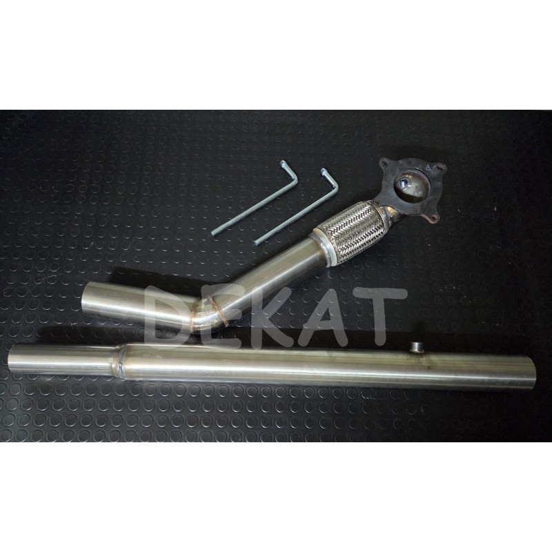 Downpipe ARTIGIANALE realizzato con tubo in acciaio INOX 304, adatto a sostituire il catalizzatore sui motori 1.8 160 cv TSI e 2.0 200/210 cv TSI benzina del gruppo VW
